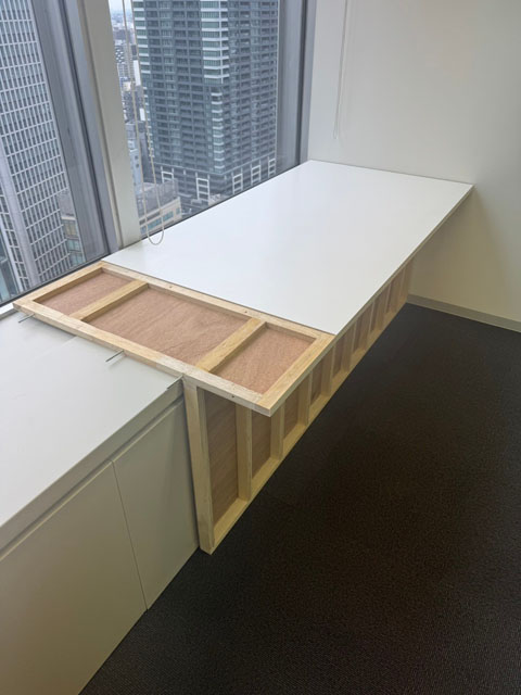 お客様としてもせっかくの窓際スペースがこのままではもったいないので、作業やリフレッシュが出来る多目的スペースとしても活用することを望まれていました。