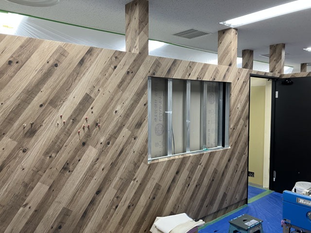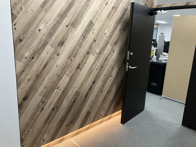 壁紙は斜めの木目が特徴的なタイプを採用。