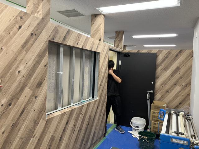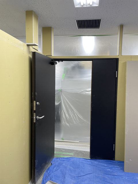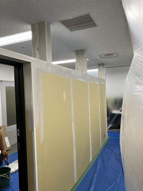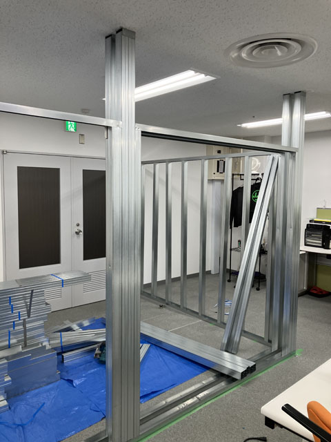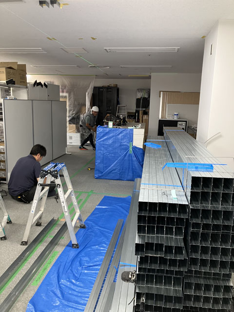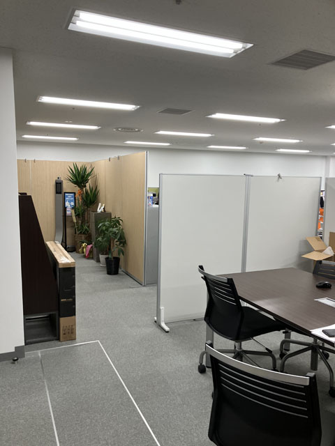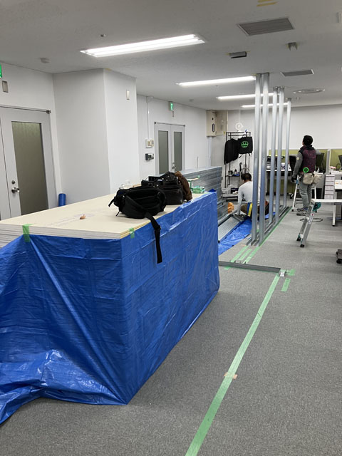 工事前はローパーティションで仮設運用中です。