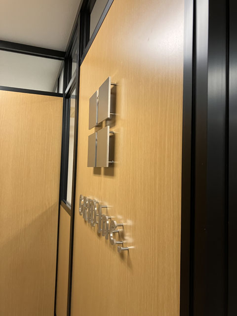 エントランス正面にステンレスサインを取り付けて完了です。