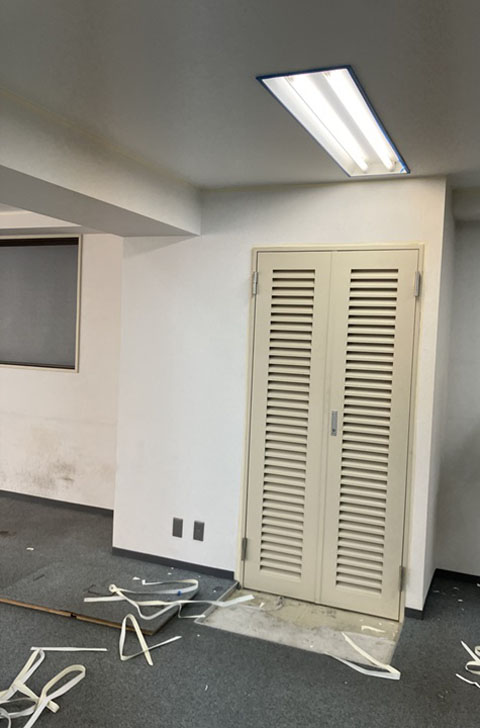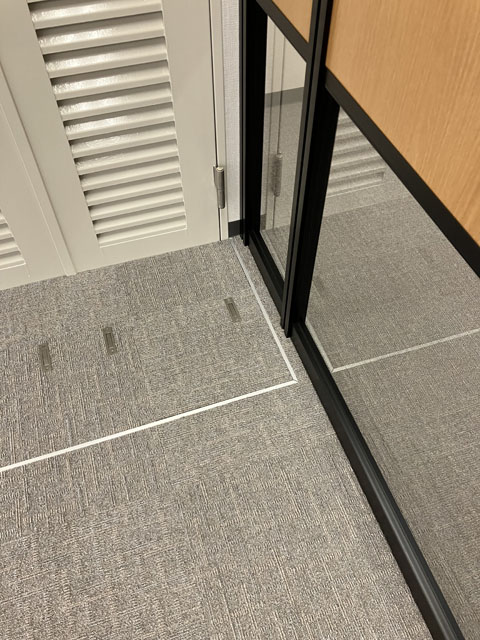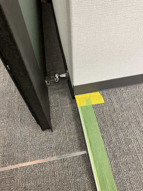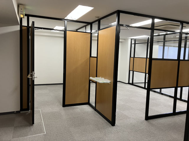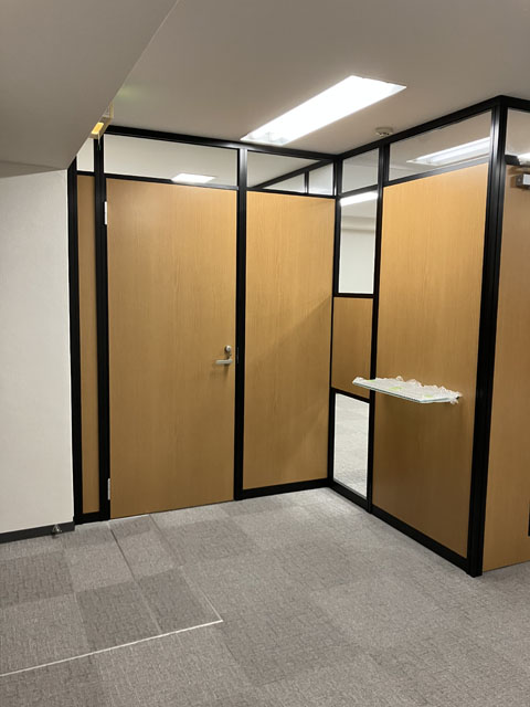 フロア入口の既設ドアと新設するパーティションドアは同時全開が出来ないレイアウトですが希望レイアウトを優先することになりました。