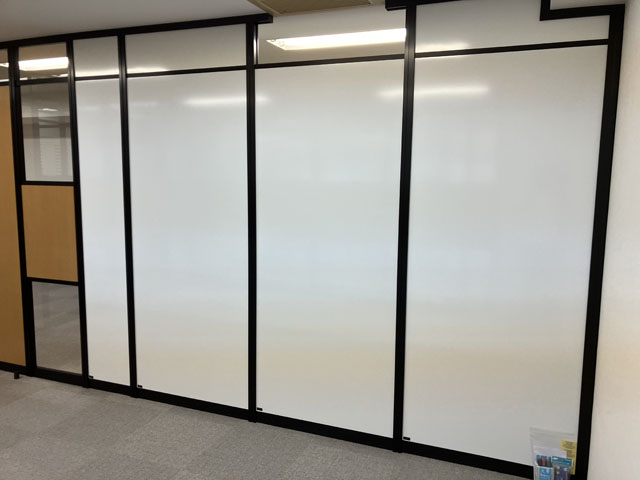 会議室に当たる部分の一部パネルはホワイトボードパネル(白)を採用。